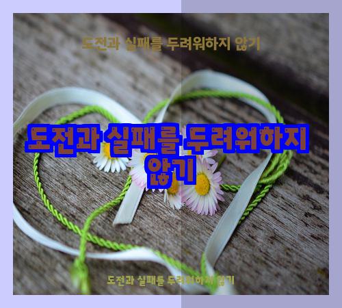 긍정적인 마음을 갖는 방법 중 하나는 도전과 실패를 두려워하지 않는 것입니다. 도전과 실패는 삶의 일부이며, 도전과 실패를 통해 성장하고 배울 수 있습니다. 도전과 실패를 두려워하지 않으면 새로운 경험을 하고, 새로운 것을 배우고, 인생을 더욱 풍요롭게 살 수 있습니다.
