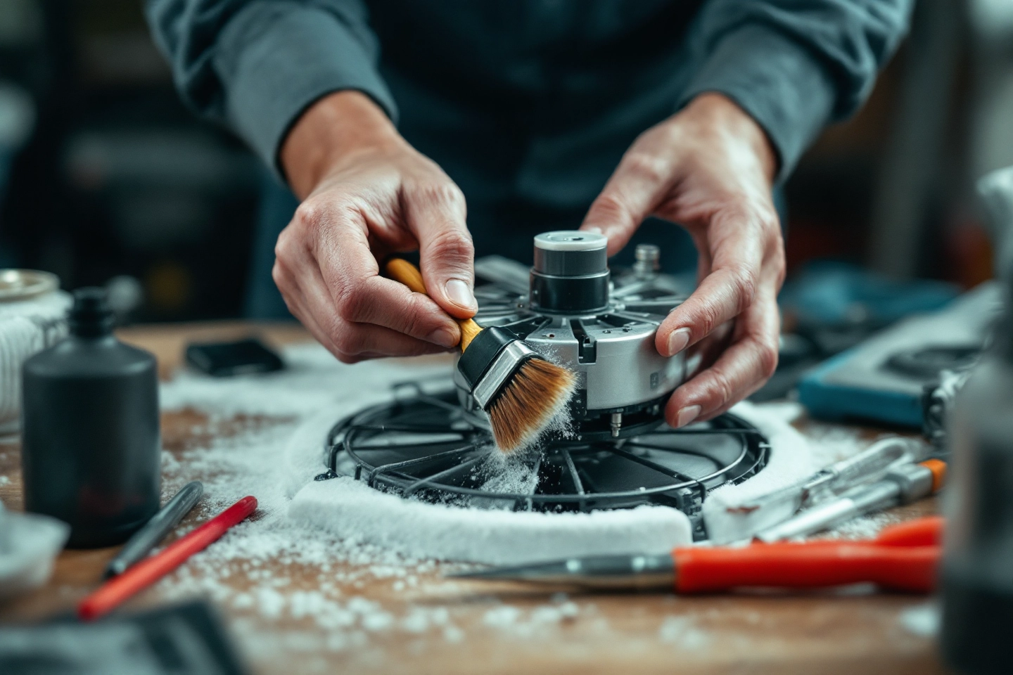 선풍기 모터 청소를 시작하기 전에 반드시 전원을 차단하고, 플러그를 뽑아야 합니다. 준비물로는 드라이버, 부드러운 브러시, 마른 천, 중성세제, 윤활유(스핀들 오일 또는 재봉틀 기름), 그리고 작은 칫솔이 필요합니다. 물이 모터에 들어가지 않도록 주의하세요. 실제로 물청소를 하다 모터가 망가진 사례도 종종 접했습니다.