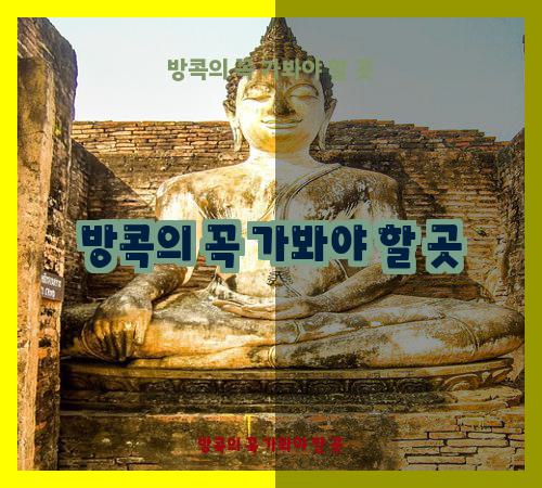 방콕에는 다양한 볼거리와 즐길거리가 있습니다. 그 중에서도 꼭 가봐야 할 곳을 몇 가지 소개하겠습니다.